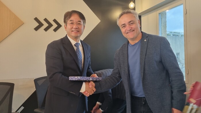 | ▲ 이동환 고양특례시장과 아비 뤼톤(Avi Luvton) 이스라엘 혁신청 국제협력국장이 악수하는 모습. 고양시 제공 |