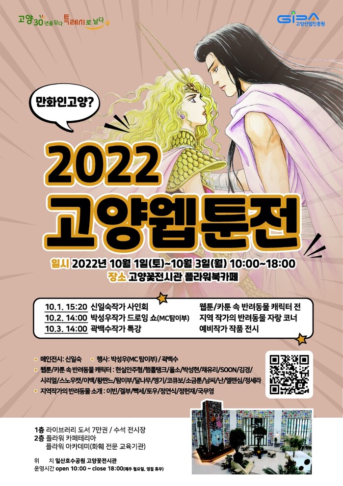 [로컬세계 = 이영원 기자]경기 고양특례시와 고양산업진흥원은 다음달 1일부터 3일까지 고양꽃전시관 플라워북카페에서 '2022 고양 웹툰전'을 개최한다고 26일 밝혔다.