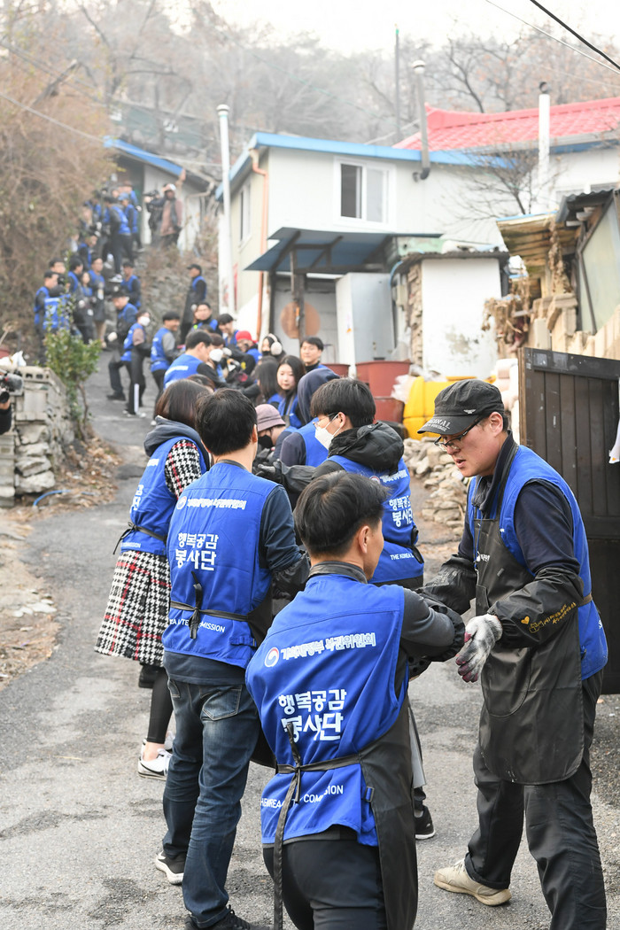 ▲10일 기획재정부 복권위원회와 동행복권이 서울시 노원구 상계동 주거환경개선지구에서 제12기 행복공감봉사단 4차 봉사활동 및 해단식을 실시했다. 행복공감봉사단원들이 연탄을 전달하고 있다. |