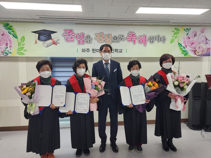 졸업식을 주최한 파주한마음교육관은 파주시 교육지원청으로부터 학력인정기관으로 공식 지정된 곳으로, 이날 졸업식에는 주간반 졸업생 40명과 가족, 교사 등이 참석해 만학의 결실을 축하했다.