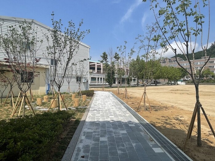 특히 숲길 형태로 복자기나무, 이팝나무 등 교·관목 1605주를 식재하고, 인조화강블록을 포장하고, 평의자를 설치하는 등 더욱 쾌적한 학교 환경 조성을 위해 힘썼다.