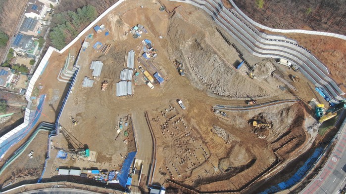 ▲드론으로 촬영한 관내 한 공사장 모습. |