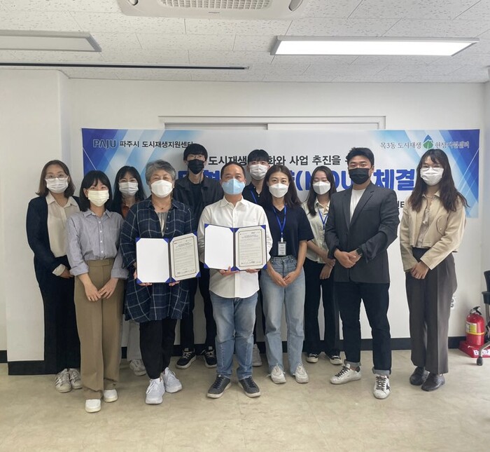 [로컬세계 = 이영원 기자]경기 파주시 도시재생지원센터는 지난 28일 목3동 도시재생현장지원센터와 도시재생 활성화를 위한 업무협력 협약을 체결했다.