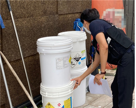 실제로 최근 경기북부 한 숙박시설에서 관리 부주의로 녹조이끼방지제 보관 용기 내부에 물이 들어가 화재가 발생, 초기진화를 시도하던 관계인이 연기흡입으로 병원으로 이송되는 안타까운 사고가 발생하기도 했다.