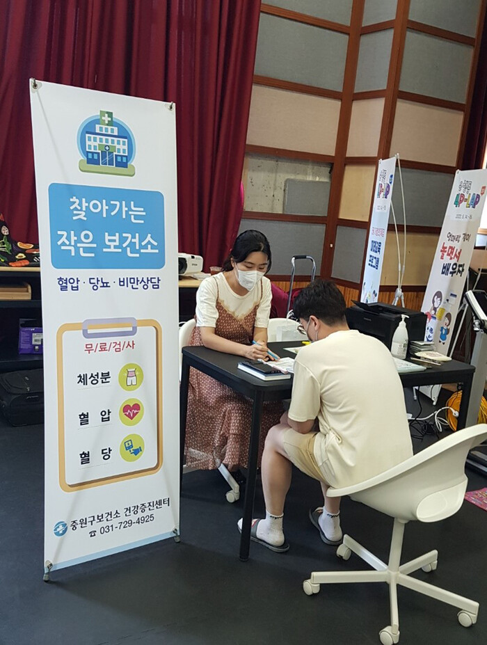 [로컬세계=김병민 기자] 성남시 중원구보건소는 바쁘게 사는 지역 주민들의 건강관리를 지원하기 위해 오는 9월 28일까지 ‘찾아가는 작은 보건소’를 운영한다.