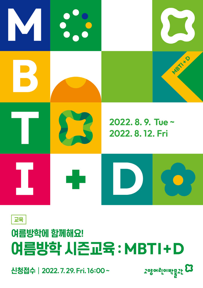 [로컬세계 = 이영원 기자]경기 고양특례시 산하 고양어린이박물관이 여름방학을 맞아 어린이와 그 가족을 대상으로 8월 9일부터 12일까지 4일간 시즌교육 ‘여름방학 MBTI+D’를 운영한다