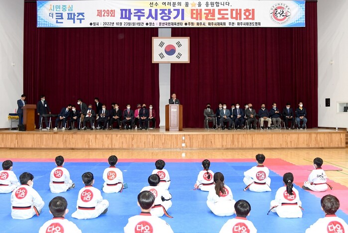 올해 29회째를 맞는 파주시장기 태권도 대회는 그동안 지역의 우수 선수를 발굴하는 장이 돼 왔으며, 최근에는 ▲2021년 제6회 아시아 품새 선수권대회 1위 ▲2022 세계태권도품새선수권대회 자유품새 우승 등 각종 태권도대회에서 우수한 기량을 선보이며 파주시 태권도의 위상을 높이고 있다.