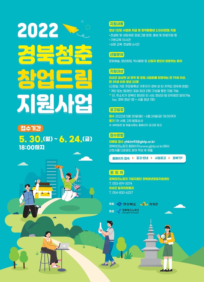 [로컬세계=박상진 기자]경북 의성군은 오는 24일까지 재능있는 청년창업가의 양성을 통해 청년들의 활력이 넘치는 의성을 도모하고자, 2022년 경북청춘 창업드림 지원사업 참여자를 모집한다.