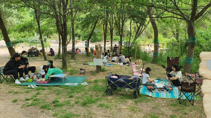 ▲올 5월 서울 여의샛강생태공원에서 열린 수달 그림 그리기 대회에 참가한 학생들이 그림 그리기에 열중하고 있다. |