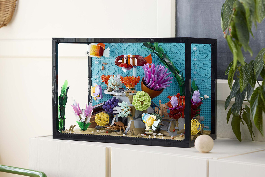 이번 신제품은 성인층을 중심으로 확산하고 있는 ‘집 꾸미기’ 트렌드에 맞춰 물 없이도 감상할 수 있는 관상용 수조를 콘셉트로 선보인다. 총 4,154개의 브릭으로 열대어, 산호초, 조개 등 각양각색의 해양 생물들로 가득한 대형 수조를 생생하고 입체적으로 구현했다.