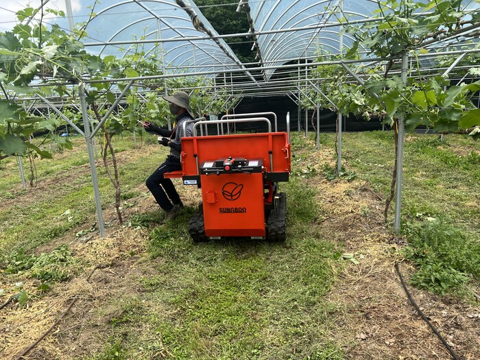 | ▲ 한 농가에서 용인특례시가 대여한 동력운반차를 이용해 작물을 관리하고 있다. 용인시 제공 |