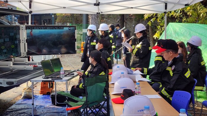 훈련은 산불 발생 현장에서 디지털 무전기를 운용하는 방법과 지휘시스템을 점검하고 진화 헬기와의 공조 및 소화시설 등의 가동을 점검하는 내용으로 진행됐다.