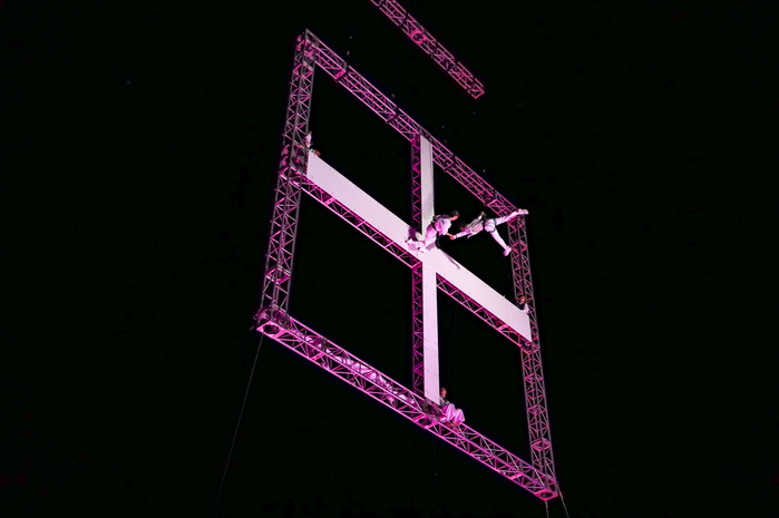 공모작 중 대표작은 ‘창작중심 단디’의 ‘고도’라는 작품이다. 금·토요일 저녁 8시30분 경기상상캠퍼스 사색의동산에 마련된 거대한 구조물을 무대 삼아 공중퍼포먼스로 눈길을 사로잡는다. 세상을 의미하는 거대한 구조물을 설치하고 이에 오르는 유일한 길인 줄을 매달아 아득하게 높은 길을 오르는 사람들을 표현한다.