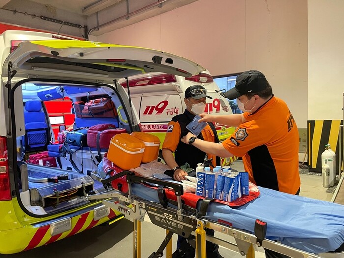 도 소방재난본부는 우선 구급차에 얼음조끼와 생리식염수, 정제소금 등 폭염 대비 물품 9종을 갖춘 폭염 구급대 275대를 운영한다. 또 예비 출동대인 펌뷸런스 250대를 지정해 구급차 적재물품에 준하는 폭염 대응 장비를 비치, 구급차 부재 시 초기 응급처치에 나선다.