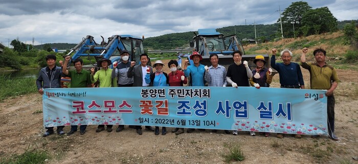 [로컬세계=박상진 기자]경북 의성군 봉양면 주민자치회는 지난 13일 주민자치회 위원들이 함께 나서 도리원교 밑 쌍계천 일대에 1000평 규모의 꽃길을 조성했다고 17일 밝혔다.
