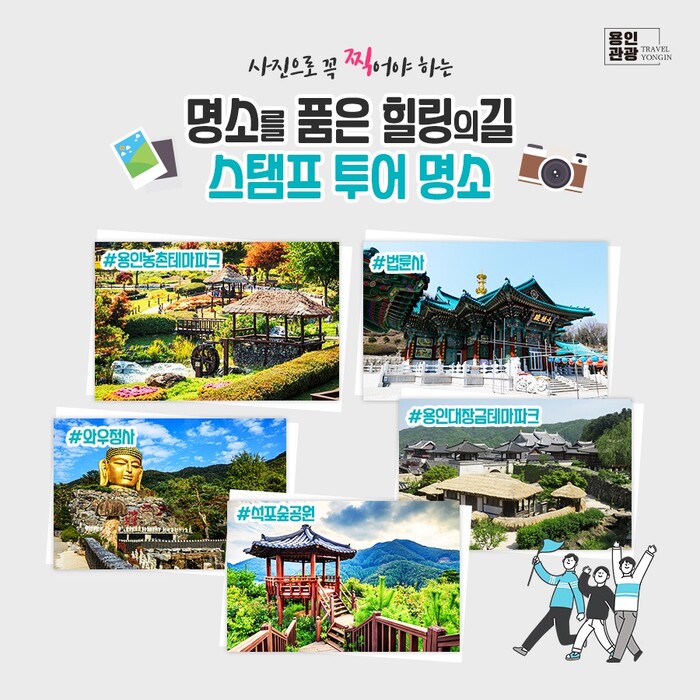 이달부턴 이들 명소를 차례로 방문해 스탬프를 모두 획득한 참가자 300명에게 선착순으로 용인관광 캐릭터인 꽁알몬이 그려진 텀블러나 인형을 제공하는 이벤트를 운영한다.