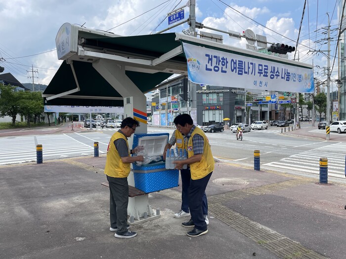 [로컬세계=김병민 기자]경기 이천시는 연일 이어지는 폭염에 열사병 등 온열질환을 예방하고자 도심 속 그늘막에 얼음생수 나눔 사업을 추진했다고 22일 밝혔다.