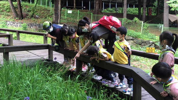 ▲2021년 유명산자연휴양림 자생식물원 유아숲체험 모습. 산림청 국립자연휴양림관리소 제공 |