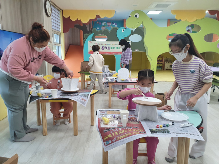 어린이 홈아트 패키지 지원은 코로나19 장기화로 외부활동이 제한된 영유아와 초등학생 가구를 대상으로 아동들이 겪는 우울감과 스트레스를 해소하고 가족과 함께 유익한 시간을 보낼 수 있도록 가정 내 학습놀이 패키지와 소아용 KF94마스크를 지원하고 있다.