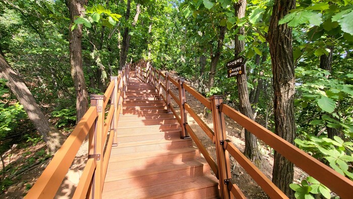 등산로에는 누구나 편리하게 오갈 수 있도록 목재 데크를 설치하고, 안전사고 예방을 위한 안전로프, 방향 안내판 등도 설치했다.
