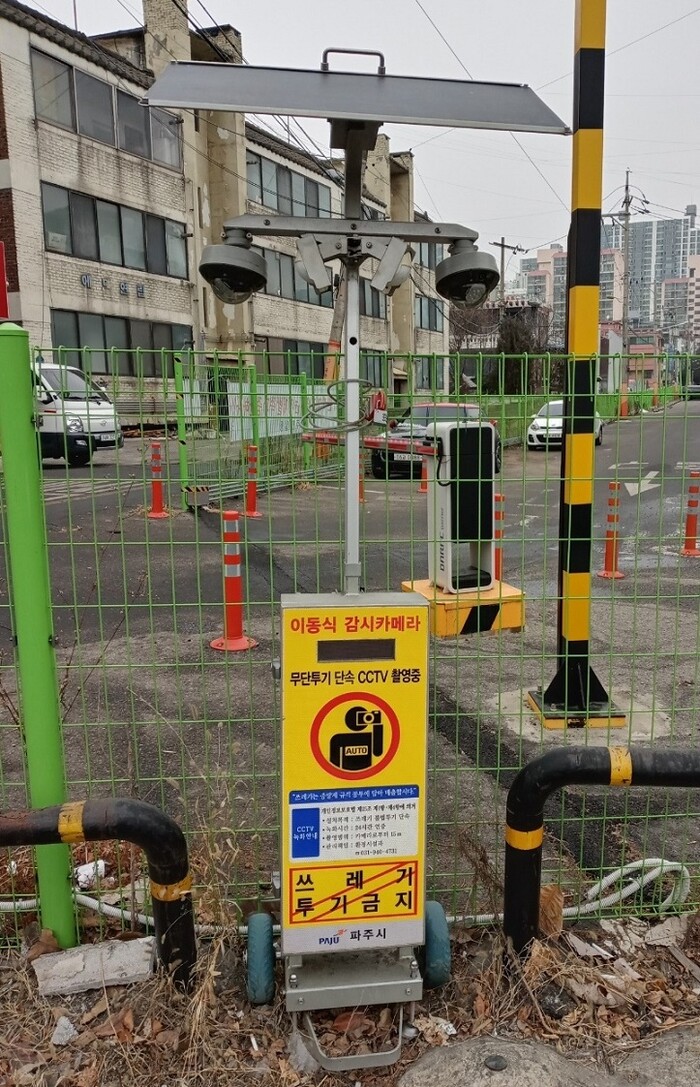 ▲ 상습투기지역에 이동식 감시카메라 추가 설치로 쓰레기 불법투기 단속 강화. 파주시 제공 |