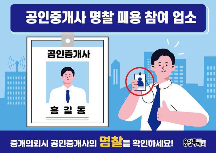 [로컬세계 김병민 기자]경기 용인시 기흥구는 무자격자 등의 불법 부동산 중개로 인한 시민들의 피해를 예방하기 위해 '공인중개사 명찰패용 참여업소' 인증 스티커를 제작해 배포한다고 31일 밝혔다.