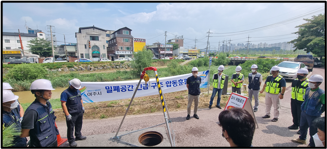 여주시와 k-water 관계자등 20명이 참석한 이번 구조훈련에서는 밀폐공간작업 시 발생할 수 있는 재해상황에 대비한 △특별안전보건교육과 산소농도측정 △응급처치 및 탈출요령 △보호구착용 및 사용법 등 안전수칙과 인명구조에 중점을 두고 진행했다.