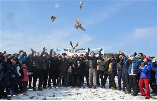 이번 행사에는 초·중·고 학생들과 일반인 등 200여 명이 참여해 매년 우리나라를 찾아오는 독수리, 두루미, 재두루미 등의 천연기념물 겨울철새에게 최소한의 먹이를 제공할 계획이다.