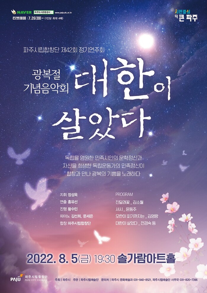 이번 공연은 광복 77주년을 기념하며 민족시인의 문학정신과 독립운동가의 민족정신을 노래할 예정이다.