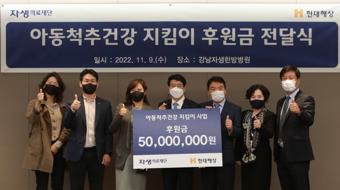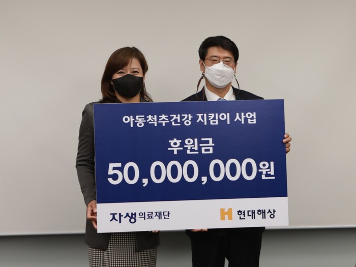 이날 행사에서 현대해상화재보험은 저소득층 아동들의 척추·관절 건강관리를 위한 사회공헌기금 5000만원을 자생의료재단에 기탁했다.