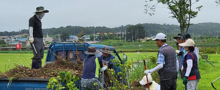 [로컬세계=박상진 기자] 최근 집중호우로 침수 피해를 입은 의성군 비안파크골프장이 클럽회원 등의 자원봉사로 제모습을 되찾아가고 있다.