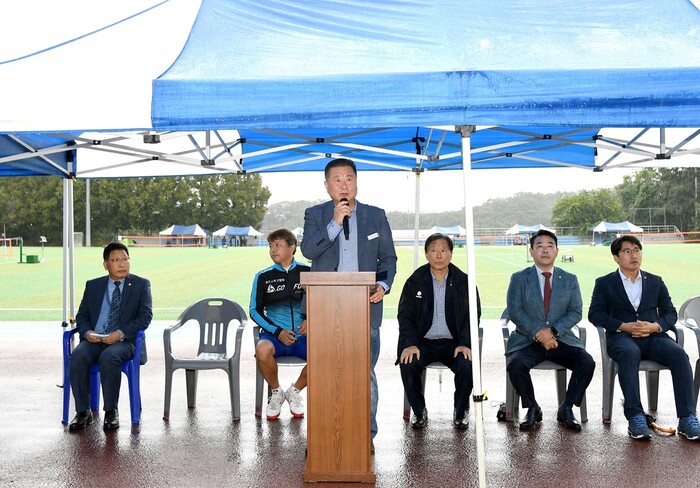 | ▲ 김경일 파주시장이 생활체육 족구대회 개최 격려사를 하고 있다. 파주시 제공 |