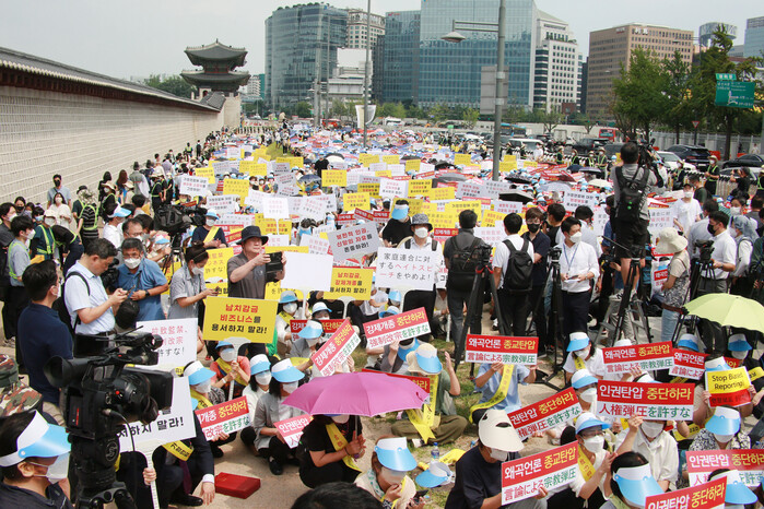 가정연합 재한 일본 신도 언론피해 대책위원회는 지난 18일 오후 2시 서울 종로구 광화문 국립고궁박물관 앞에서 ‘가정연합에 대한 일본 언론의 편향보도 항의집회 및 평화행진’을 갖고, “일본 언론이 벌이고 있는 가정연합에 대한 왜곡보도는 종교탄압이자 인권탄압”이라고 목소리를 높였다.
