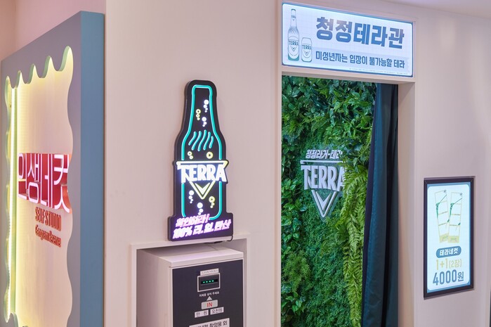 강남과 홍대 매장에는 테라 전용 부스도 각각 1대씩 설치했다. 부스는 테라의 시그니처 색상인 초록색과 테라의 심볼로 꾸몄다. 촬영 공간은 녹음이 무성한 플랜테리어(식물+인테리어의 합성어)를 적용했으며 테라의 청정함을 전달하고자 했으며 도심 속 자연의 분위기를 연출할 수 있다.