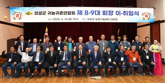 [로컬세계=박상진 기자]경북 의성군 귀농귀촌연합회는 지난 16일 농업기술센터 대강당에서 회원 100여명이 참석한 가운데 제8대·9대 회장 이·취임식을 가졌다.