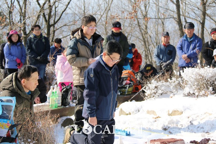 임재진 부회장은 축문 낭독을 통해“대한민국 명산인 계룡산 금수봉 정상에서 천지신명과 계룡산 신령님께 엎드려 고한다”며 “회원모두가 자연을 소중히 여기고 항시 안전한 산행이 될 수 있도록 굽어 살펴 주시길 빈다”고 축원했다.