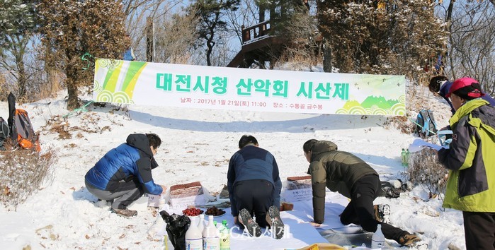 이날 시산제에는 권선택 대전시장을 비롯해 신상열 산악회장, 신상래 전임회장, 강춘구·임재진 부회장, 허춘 비서실장, 현청용 남부소방서장, 주황룡 산악대장, 김진중 시청 노조위원장 등이 참석했다.