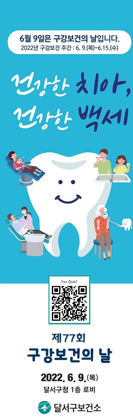 이태훈 달서구청장은 “구강보건의 날 행사는 장기간의 코로나19 감염병 상황이후 처음으로 개최하는 캠페인으로, 마스크 속에 가려져 소홀해지기 쉬운 구강건강의 중요성을 이번 기회를 통해 널리 홍보하고 구민의 건강 수명을 연장하는 좋은 시간이 되길 바란다”고 했다.