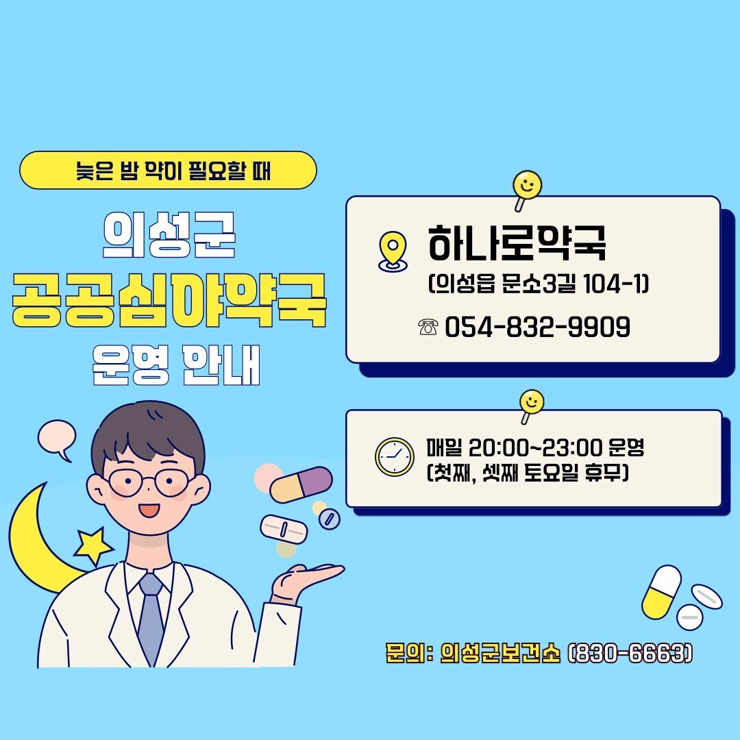 이와 함께 군은 공공심야약국도 2026년 지속 운영한다. 지정 약국인 하나로약국은 매일 오후 8시부터 11시까지 운영하며, 매월 첫째·셋째 토요일은 휴무다. 지난해에는 일반의약품 판매와 처방약 조제, 건강기능식품 구입, 복약 상담 등 총 2400여 건의 이용 실적을 기록했다.