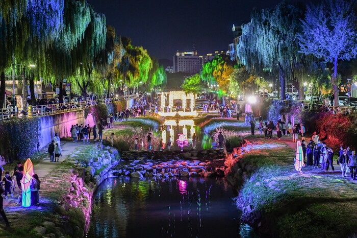 ▲ 관람객들이 수원천변을 걷고 있다. |