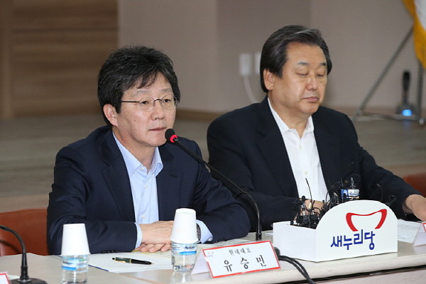 ▲유승민 원내대표(왼쪽)가 발언을 하고 있다. 사진제공 새누리당. |