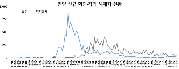 ▲확진자 일별 추세 (5.17. 0시 기준, 11,050명) |