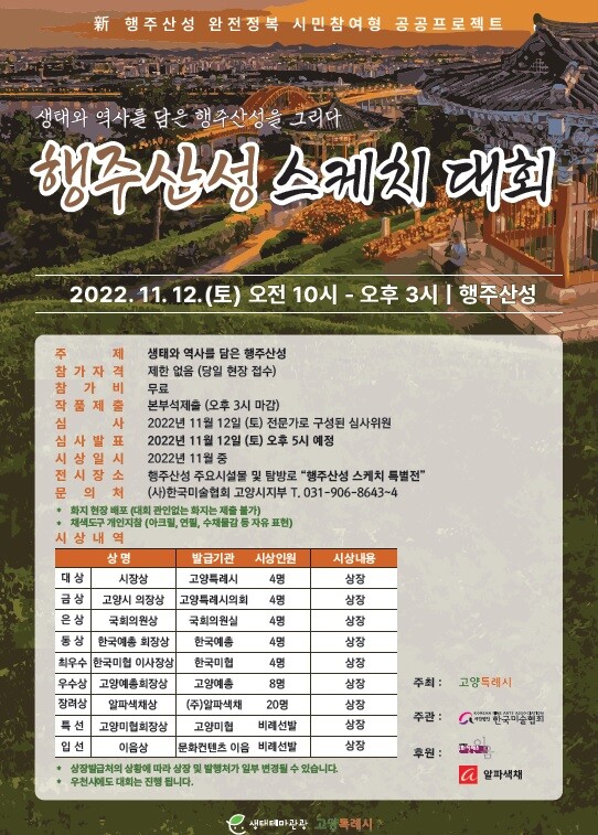 스케치 대회는 2022년 문화체육관광부의 생태녹색관광 활성화 공모에 선정된 '新행주산성 완전정복'의 일환으로 추진되는 참여형 공공프로젝트로, 고양시가 주최하고 한국미술협회 고양지부에서 주관한다.