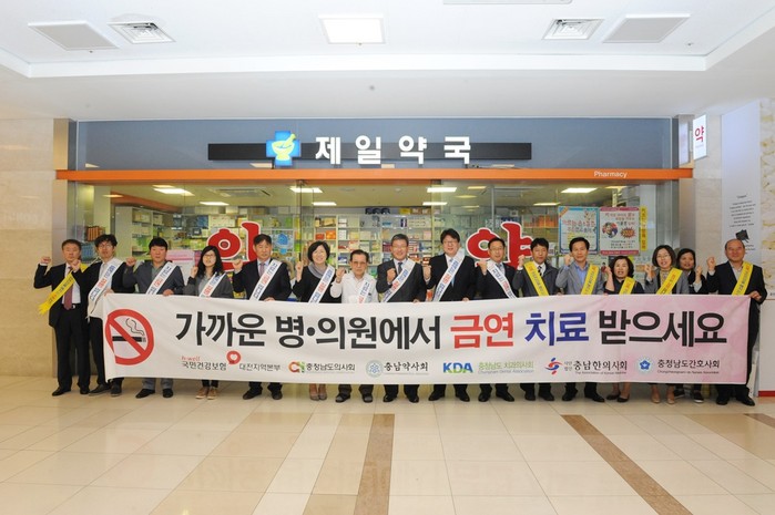 [로컬세계 조윤찬 기자]국민건강보험공단 대전지역본부와 충청남도 의약단체는 지역 금연 분위기 조성과 금연치료 지원사업을 홍보하기 위해 27일 천안시외버스터미널 인근에서 공동 금연캠페인을 벌였다.