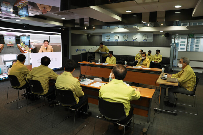 ▲ 5일 오전 수협중앙회 안전조업상황실에서 홍진근 수협중앙회 대표이사가 목포 어선 전복사고 대응을 위한 긴급대책회의를 주재하고 있다. 수협중앙회 제공 |