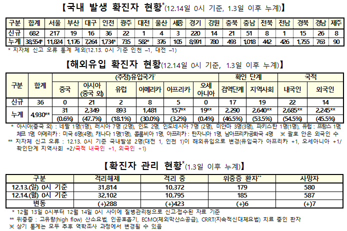 ▲일일 확진자 현황 (12.14. 0시 기준, 43,484명) |