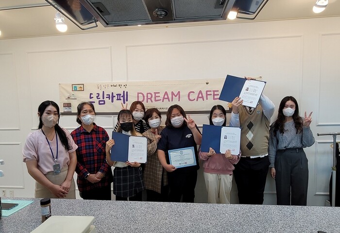 ‘꿈을 담은 커피 한 잔’은 장애인의 경제활동과 사회참여를 확대하기 위해 파주시문산종합사회복지관과 마련한 바리스타 2급 자격증 취득 프로그램으로, 총 50시간의 이론학습과 실습 과정으로 진행됐다.