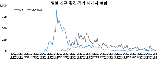 ▲확진자 일별 추세 (5.25. 0시 기준, 11,206명) |
