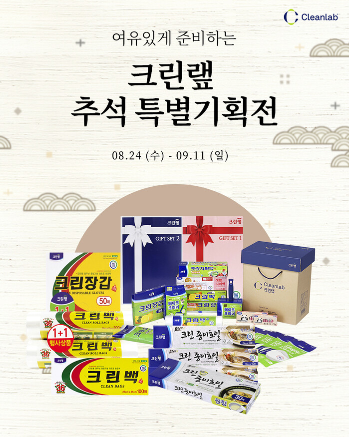 국내 대표 생활용품 기업 크린랲(대표 승문수)이 민속 명절 한가위를 맞아 자사 온라인 공식몰 ‘크린랩몰’에서 다음 달 11일까지 필수 주방·위생용품 대상 특별기획전을 연다고 밝혔다.