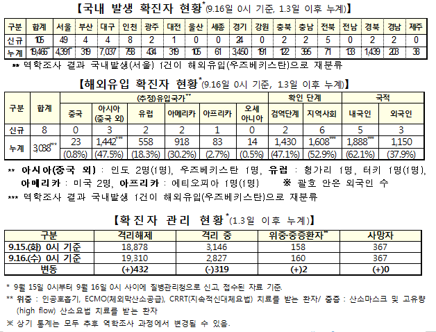 ▲일일 확진자 현황 (9.16. 0시 기준, 22,504명) |